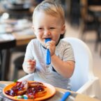 Yes, upon request we provide cots, bathtubs, bottle warmers, socket covers, and high chairs in the restaurant.